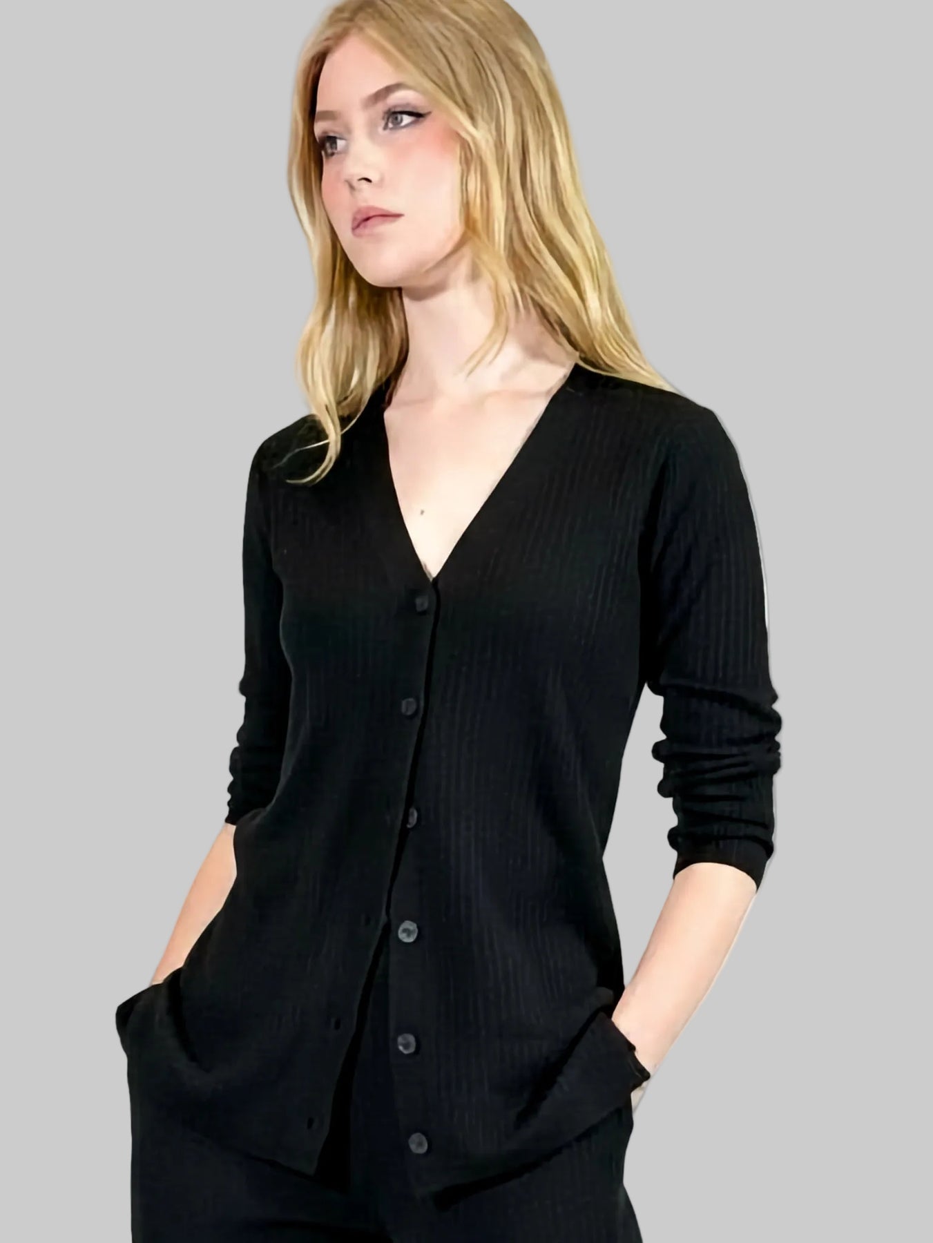 The Trinity cashmere-blend cardigan is a classic, timeless piece designed to be worn all year round. A soft, lightweight rib knit cardigan with a relaxed fit, featuring a stylish V-neckline and button-front closure. Great to pair with Walker cashmere pants.