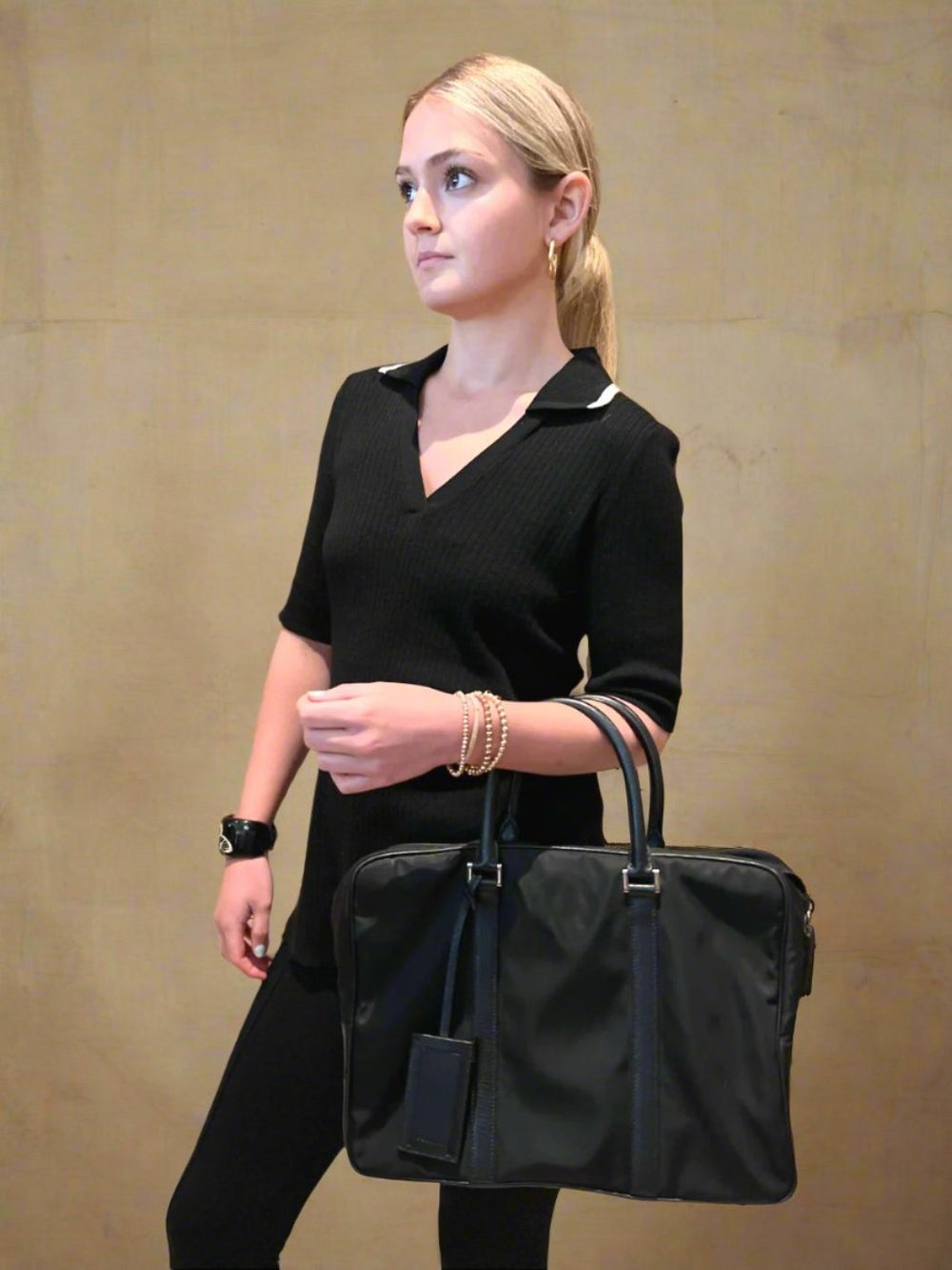 This luxurious cashmere-blend rib knit polo is perfect for all seasons. An ideal choice for business, pleasure, or a quick escape, this sophisticated lightweight sweater knit chic, sophisticated and relaxed.  The classic striped detail at the collar lends timeless elegance. Pair with the Walker knit pull-on pants for a timeless ensemble.