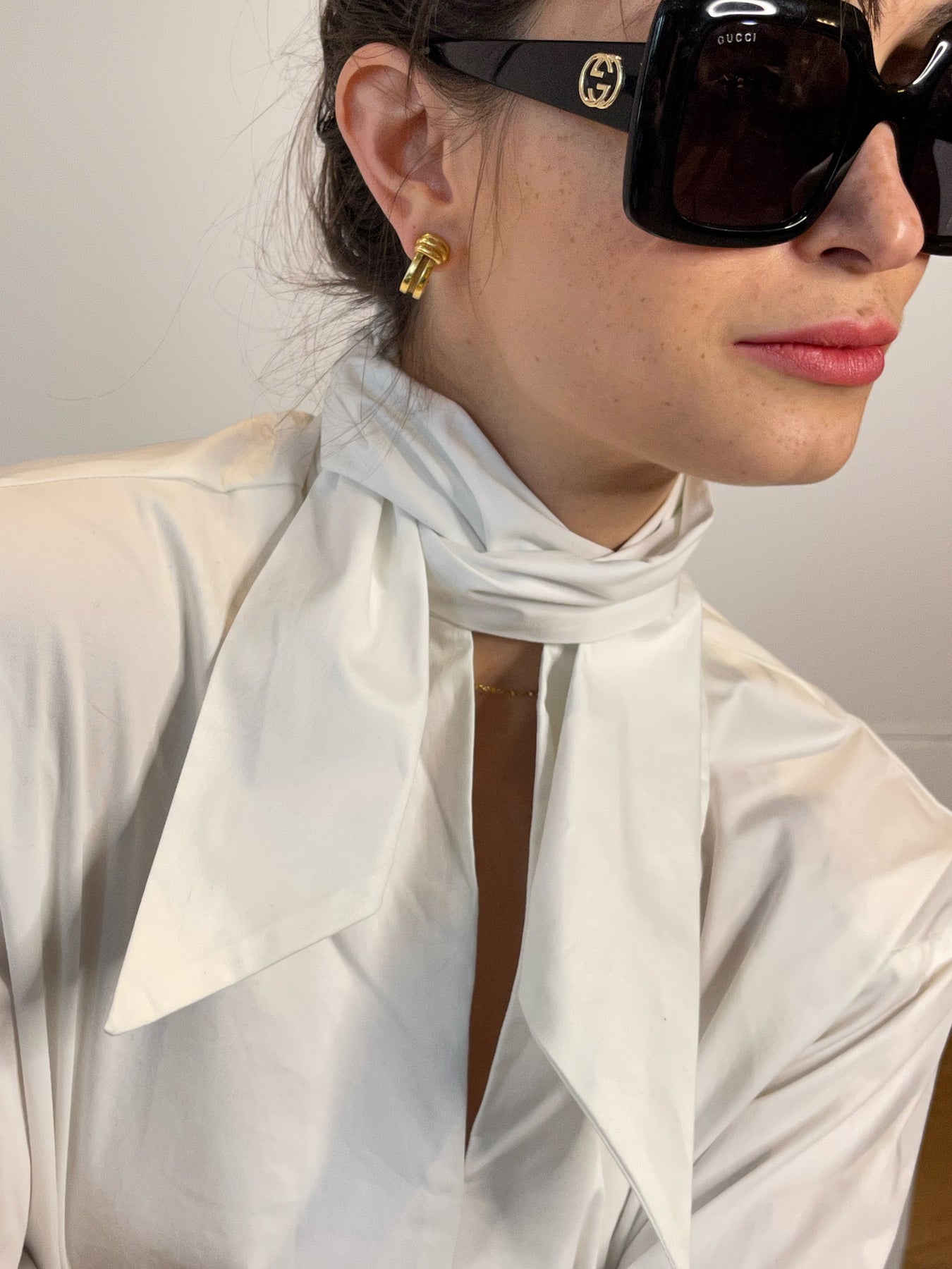 Tie Front White Poplin Shirt Made from Stretch Organic Cotton. Sumptuous high denier thread count produces a luxurious weight cotton with just the right amount of stretch.